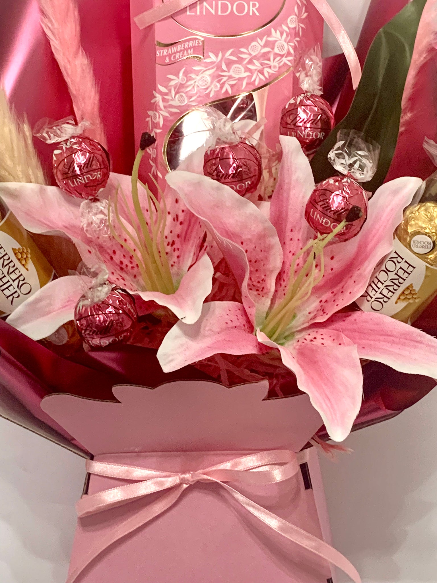 luxury Lilly’s and pampas grass chocolate bouquet contains